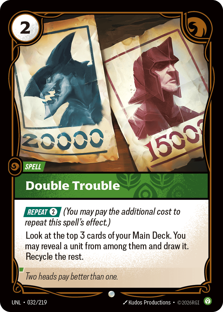 REPEAT :rb_energy_2: (You may pay the additional cost to repeat this spell's effect.) Look at the top 3 cards of your Main Deck. You may reveal a unit from among them and draw it. Recycle the rest.